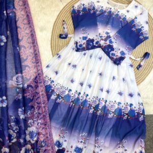 জর্জেট গাউন+ওড়না টু পিছ নীল কালার