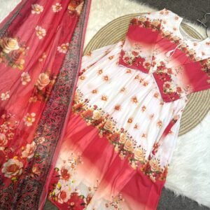 জর্জেট গাউন+ওড়না টু পিছ লাল কালার