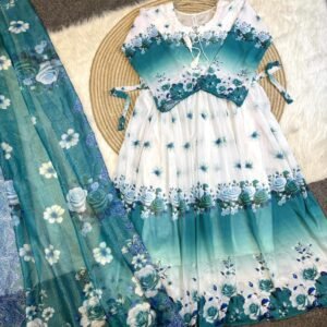 জর্জেট গাউন+ওড়না টু পিছ ফিরোজা কালার