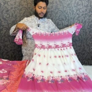 জর্জেট গাউন+ওড়না টু পিছ গোলাপি কালার