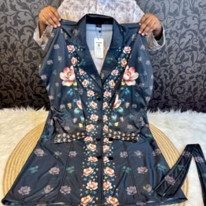 প্রিন্ট ওভারকোট কালো কালার